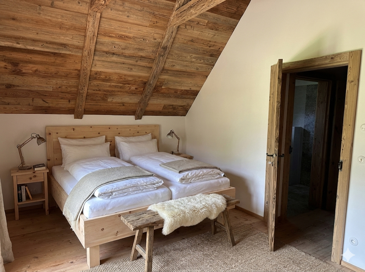 Für Gäste, die das Besondere suchen, bietet unsere „Alte Mühle“ ein unvergleichliches Wohnerlebnis auf zwei Etagen. Als eigenständiges Haus thront sie direkt am Waldrand und verbindet den urigen Charakter eines historischen Gebäudes mit dem Luxus von heute. Hier, wo der Wald beginnt, finden Sie die ultimative Ruhe.