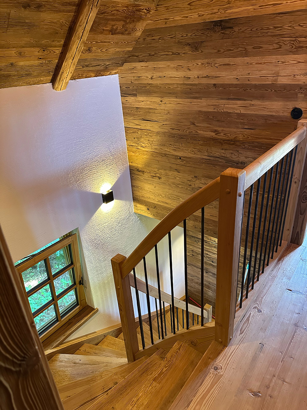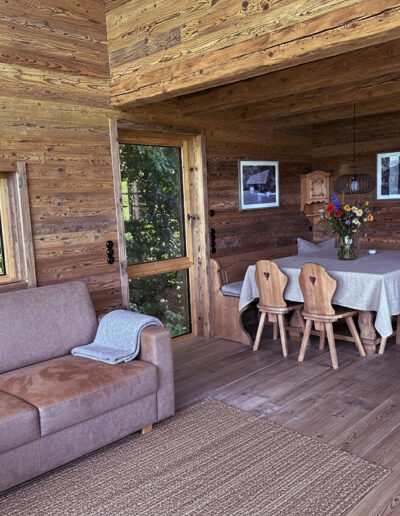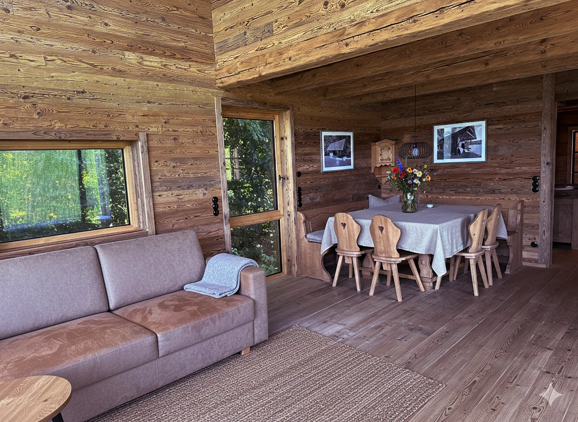 Echte Werte: Auch in der Alten Mühle haben wir jedes Detail mit Bedacht gewählt. Die Kombination aus alten Mauern, handgesetztem Ofen und dem Duft von Zirbe macht dieses Haus zu einem Kraftort für Körper und Seele.