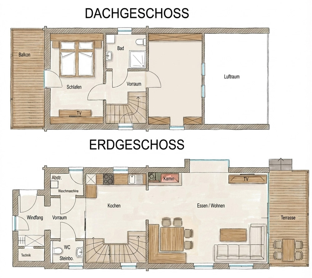 Im Erdgeschoss erwartet Sie ein großzügiger Wohnraum, der Gemütlichkeit neu definiert: