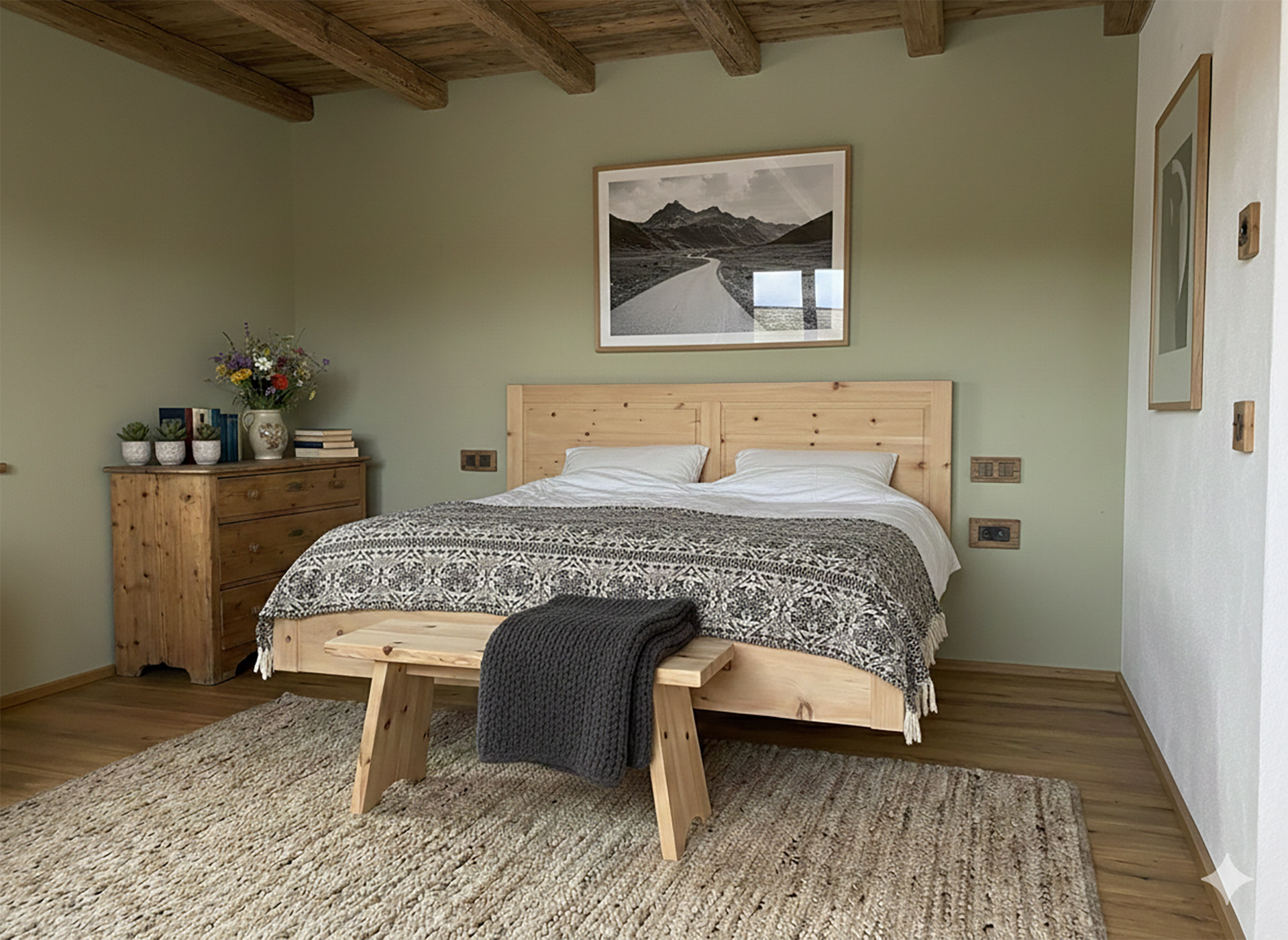 Träumen im Zirbenduft: Das separate Schlafzimmer ist ganz auf Ihre Erholung ausgerichtet. Das massive Zirben-Doppelbett sorgt mit seinem natürlichen Duft für ein gesundes Raumklima, während die hochwertigen ADA-Matratzen einen Schlafkomfort der Extraklasse garantieren.
